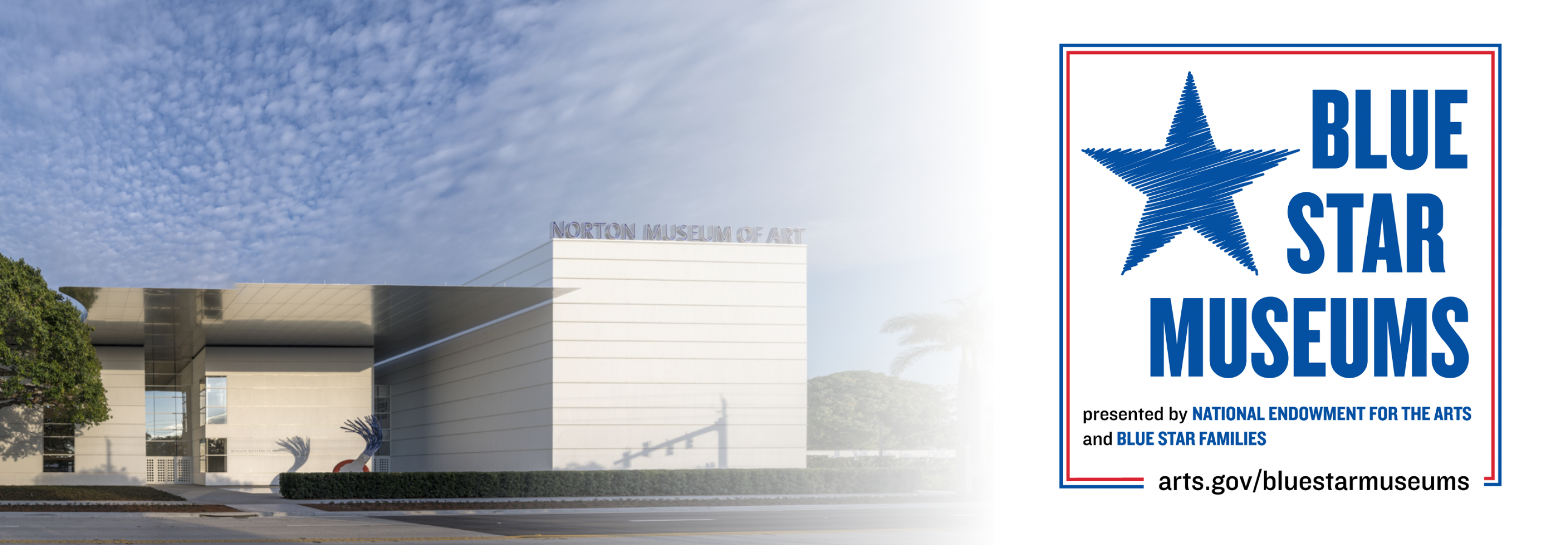 Blue Star Museums is a collaboration among the National Endowment for the Arts, Blue Star Families, the Department of Defense, and participating museums across America. For a list of participating museums, visit arts.gov/bluestarmuseums.